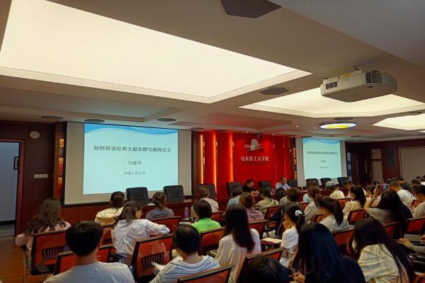 9月21日下午,马克思主义学院在育才校区第二文科楼503室举行“望道讲堂”第135讲《怎样研读经典文献和撰写阐释论文》。本次讲座由广西师范大学马克思主义学院、广西师范大学马克思主义理论高峰学科(思政方向)、广西高校人文社科重点研究基地马克思主义理论与区域实践研究中心主办,由中国人民大学马克思主义学院二级教授、中央实施马克思主义理论研究和建设工程首席专家、教育部长江学者特聘教授、国家高层次人才特殊支持计划哲学社会科学领军人才入选者刘建军教授主讲,由广西师范大学马克思主义学院蔡小菊教授主持,学院研究生和部分教师聆听了报告。