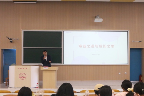 为进一步引导2025级本科生明确专业发展方向,提升学业规划能力,提高学科认同与自我认知能力,10月24日下午,马克思主义学院在雁山校区文一区108教室举行“崇文讲堂”第2讲《专业之道与成长之思》。本次讲座由马克思主义学院主办,由华东师范大学哲学博士、复旦大学博士后、广西师范大学马克思主义学院专任教师、硕士生导师韩建夫副教授主讲,2024级本科生代表、2025级全体本科生参与学习。学院团委副书记、2025级本科生辅导员冯回老师主持讲座。