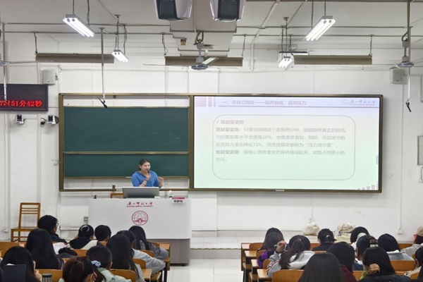 为了帮助同学们摆脱焦虑情绪,树立关注自我成长的积极思维,学习悦纳自我、缓解压力、人际调适等方面的方法,搭建实用化、共情式的心理支持与交流平台,11月2日,学院在文四204教室举办了“关照心灵,拥抱阳光”心理健康主题讲座。分享会由大学生心理健康中心的董静怡老师主讲,2023级全体本科生参与。