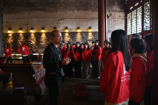 在廉政文化教育基地周渭祠,讲解员带领同学们依次参观了周渭生平事迹展厅、廉政文化长廊与古碑刻陈列区等核心展区。讲解员通过详实的图文史料、珍贵的实物陈列以及感人至深的廉政故事,为同学们生动讲述了北宋名臣周渭勤政爱民、清正廉洁的一生,深入阐释其为官智慧与处事准则。支部成员王移帆同学在现场进行理论微宣讲,并呼吁同学们要将周渭的廉洁风骨与党的二十届四中全会精神学习相结合并融入日常,以“永远在路上”的坚韧和执着,坚守廉洁初心、勇担时代使命,成为千年廉政文化的传承者与新时代廉洁文化建设的开拓者。