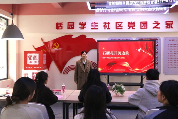 活动开始,主持人在介绍联合学习意义后,望道宣讲团成员以“石榴花开美边关——铸牢中华民族共同体意识的广西实践”为题作专题宣讲。她结合广西三江南站社区促进民族团结的生动实践和蒙晓梅老师的感人事迹,深入阐释了中华民族共同体意识的时代价值,为后续交流研讨奠定了理论基础。
