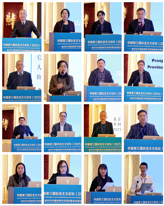 会上,中共中央党校(国家行政学院)严书翰教授、山东大学徐艳玲教授、南京师范大学洪光东教授、郑州大学于向东教授、陕西师范大学闫杰花教授、河南师范大学马福运教授、太原理工大学姚建军教授、天津师范大学贾丽民教授、广西师范大学孟宪平教授、越南社会科学翰林院哲学所副所长陈俊峰博士、胡志明国家政治学院第四区政治学院文化与发展系主任阮辉房、老挝国家政治与行政学院社会主义科学教研部副主任达旺ꞏ布塔努翁、河内国家大学所属社会科学与人文大学哲学系博士范清河、老挝社会经济科学院文化研究所语言学研究处处长翁娜肯ꞏ赛亚腊等国内外30余位专家学者围绕社会主义理论创新、发展道路、治国理政经验及共同体建设路径等议题,通过主题报告与交流发言等方式展开深入探讨,论坛取得圆满成功。