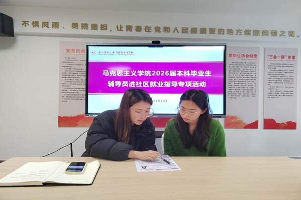 为深入贯彻落实党中央、国务院关于高校毕业生就业工作的决策部署,扎实推进2026届毕业生就业服务工作,马克思主义学院紧紧围绕“立德树人”的根本任务,以“精准服务、全域覆盖、全程引导”为工作导向,近期组织开展了系列就业指导专项活动,着力构建全员、全过程、全方位就业育人体系。