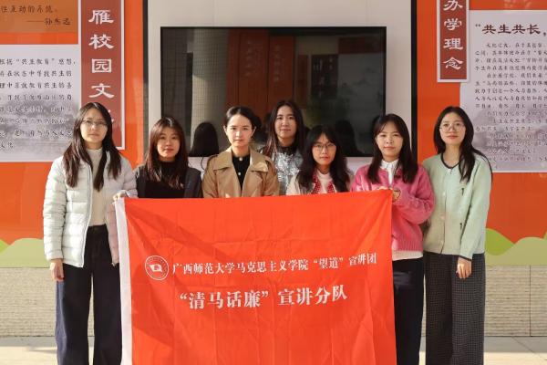 为深入贯彻落实习近平总书记关于“注重家庭、注重家教、注重家风”的重要讲话精神,生动讲好广西优良家风故事,12月8日下午,广西师范大学马克思主义学院联合桂林市金雁学校开展“荷香润童心,家风伴成长”广西家风家教故事主题宣讲活动,通过“大手牵小手”的方式,推动优良家风进校园、入童心。学院研究生专职辅导员叶茗媛老师、“望道”宣讲团“清马话廉”宣讲分队成员,金雁学校六年级学生共50余人参与活动。