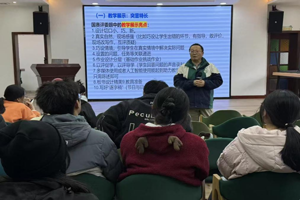 随后,陈玥孜老师结合自身参加青年教师教学竞赛的经历,开展以“青教赛备赛经验与教学成长”为主题的微分享。她从赛前准备、教学设计、现场表现、反思提升等方面展开,强调“以赛促教、以赛促研”的成长路径,鼓励师范生注重日常积累、敢于实践创新。丰富的案例与真挚的感悟,为在座学生提供了宝贵的职业发展参照。