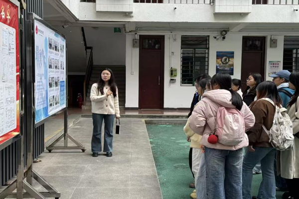 活动伊始,卓然学校陈玥孜老师热情带领见习学生参观校园,介绍学校办学理念、文化建设及思政课程实施概况。学生们漫步于书香浓郁的校园,感受“卓然独立、越而胜己”的育人氛围,对中学思政课的育人场景有了初步的认识。