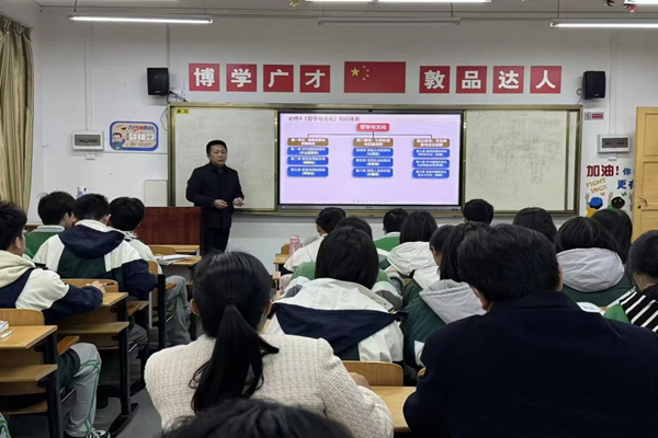 经验交流环节结束后,全体师生移步至广西师范大学附属外国语学校(育才校区),观摩由邓老师执教的高三年级思想政治复习课《文化传承与文化创新》。课堂以灵渠为情境主线,贯穿文化内涵、功能、传承与创新等核心考点,通过视频导入、问题链设计、案例辨析、真题演练等环节,层层递进引导学生重构知识体系、突破易混难点。邓老师注重学生思维引导与表达反馈,课堂互动充分,讲练结合紧密,充分展现了一节高三复习课应具备的系统性、针对性与生成性。
