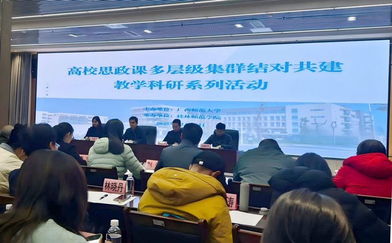 为了深入学习贯彻党的二十届四中全会精神,进一步提升共建群院校思政课教学质量和思政课教师科研能力,2025年12月12-14日,由我校马克思主义学院主办、桂林师范学院马克思主义学院承办的“高校思政课多层级集群结对共建教学科研活动”在桂林师范学院召开,来自广西师范大学、玉林师范学院、贺州学院、桂林医科大学、桂林师范学院、桂林学院等共建高校的马克思主义学院负责人、教学副院长、教研室主任和教师代表共40余人参加了活动。
