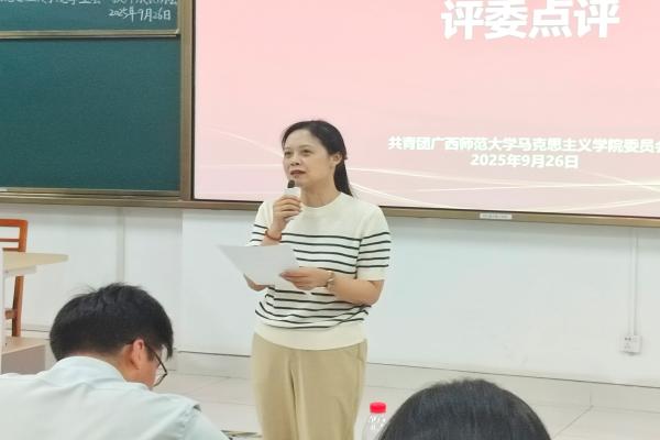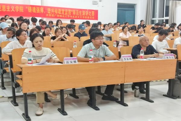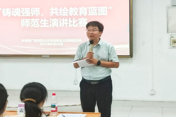 为深入贯彻落实教育强国战略,引导师范生坚定教育理想、强化使命担当,9月26日晚,广西师范大学马克思主义学院于雁山校区文四区204教室举办“铸魂强师,共绘教育蓝图”师范生演讲比赛。本次活动由学院团委学生组织与教师成长协会联合承办,特邀学院副院长李东明、林全民、雷安娜三位教师担任评委,学院2023级、2024级及2025级思想政治教育专业的同学们参加此次活动。