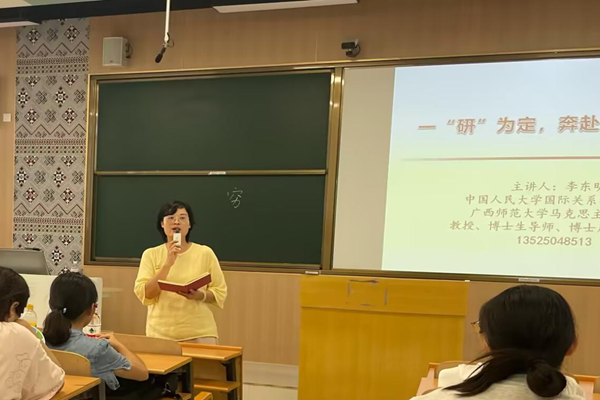 为帮助2022级本科生科学规划考研路径、明确备考方向,9月19日下午,马克思主义学院在雁山校区文科楼四区104教室组织召开以“一‘研’为定,奔赴未来和山海”为主题的考研中期交流会。会议由2022级本科生辅导员主持,学院副院长李东明、党委副书记苏明出席,2022级全体本科生参加。