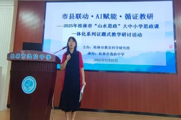 2025年9月25日,广西师范大学马克思主义学院2023级思想政治教育专业32名本科生赴桂林市逸仙中学,参与了一场以“市县联动·AI赋能·循证教研”为主题的教研活动。本次活动由桂林市教育科学研究所主办、逸仙中学承办,旨在探索人工智能与高中思想政治课深度融合的新路径,推动学科核心素养落到实处,也为思政专业本科生提供了一次难得的理论结合实践的锻炼机会。