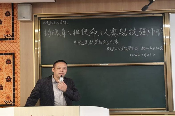 为深化师范生教学能力培养,夯实教学基本功,推动思政理论知识与教学实践深度融合,3月25日,马克思主义学院“铸魂育人担使命,以赛励技强师能”师范生教学技能大赛暨2026年度广西师范大学师范生教学技能大赛选拔赛决赛在文一区103教室顺利举行。学院思想政治教育教研室教师担任评委,2024级、2025级本科生到场观摩学习。